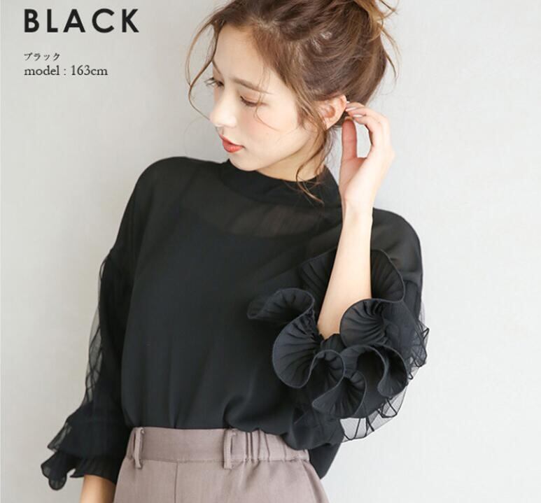 2024春夏新作 ブラウス シャツ トップス シフォンシャツ クールネック メッシュ