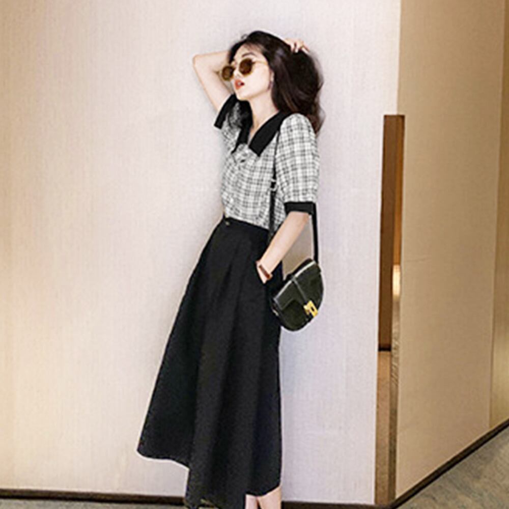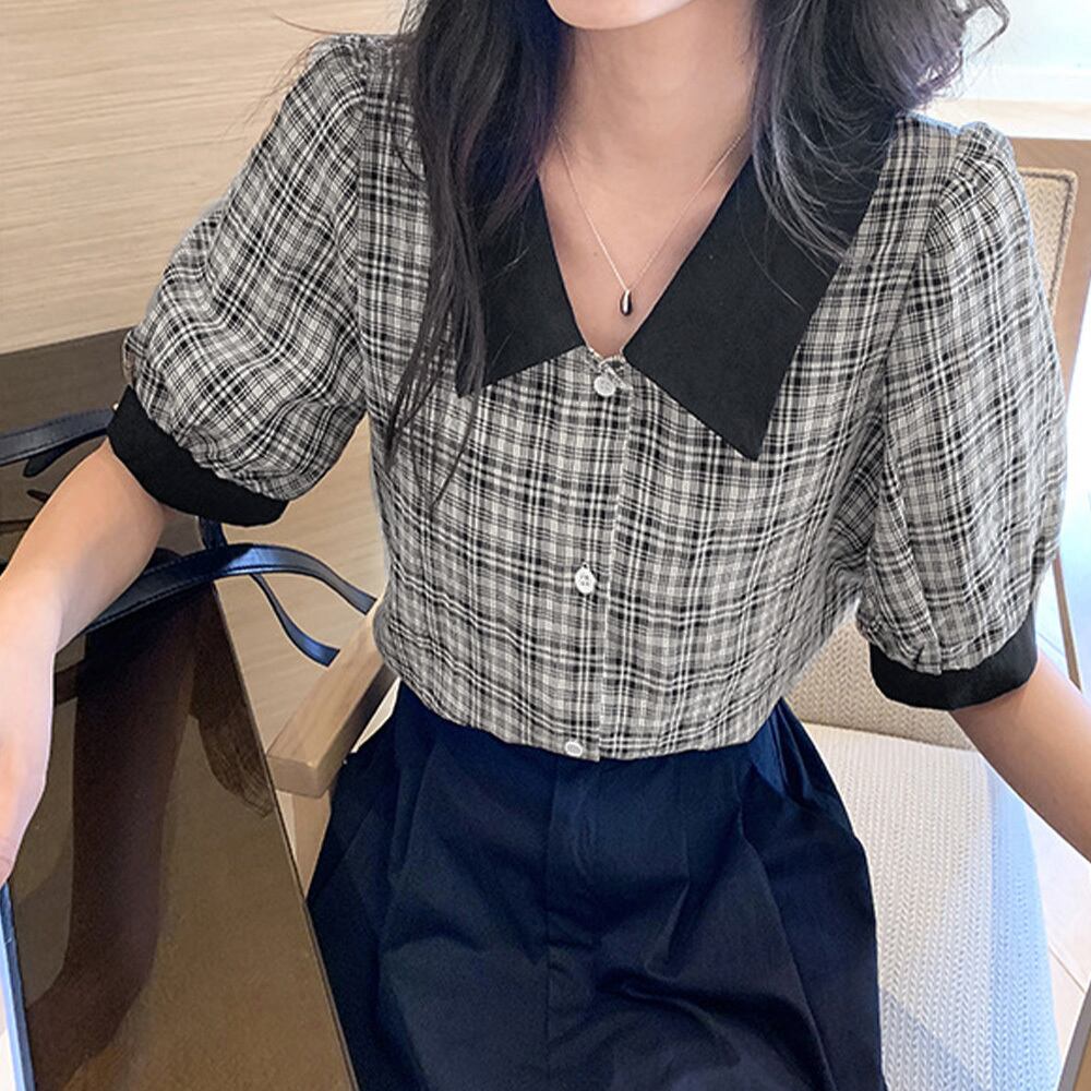 パフスリーブ 半袖 レディース トップス 5分袖 襟付き 大人可愛い きれいめ 韓国ファッション