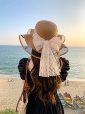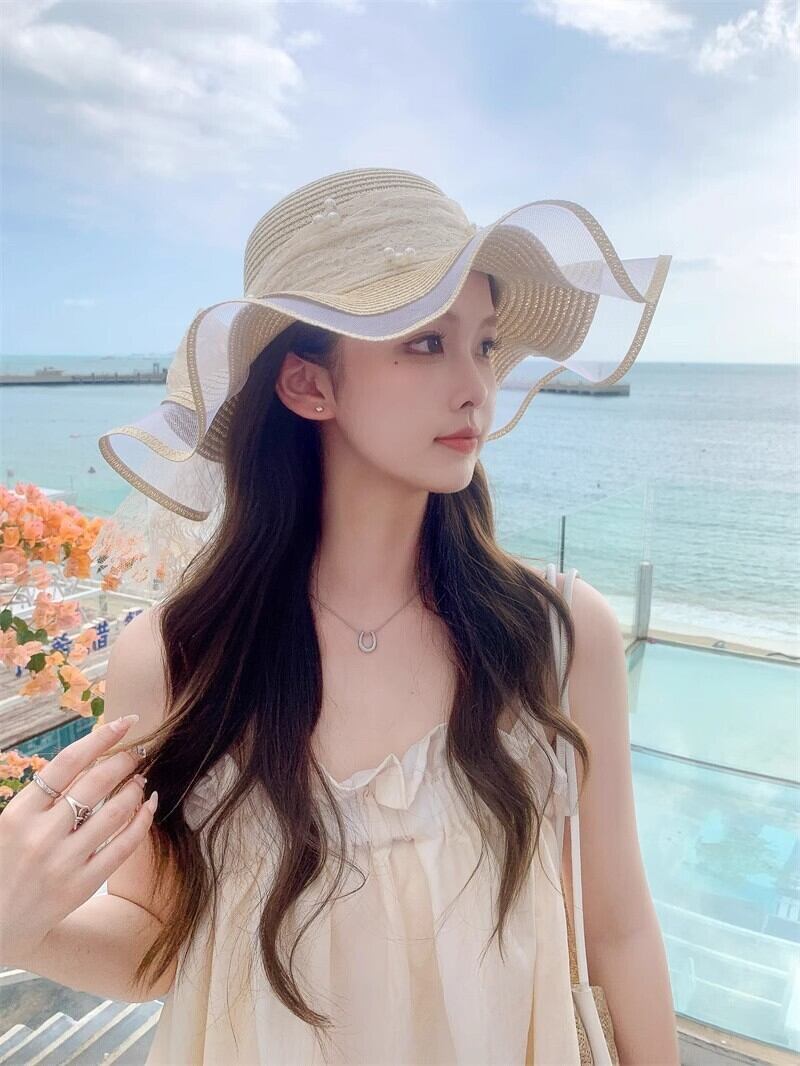 2024 レディース 遮光 リボン 紫外線対策 つば広 エレガント 麦わら風帽子 ベージュ カーキ 女優帽