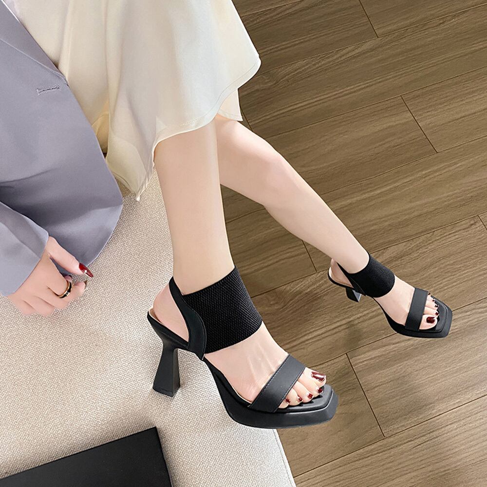 フェイクレザー夏靴 新作サマーシューズ 太ヒールサンダル