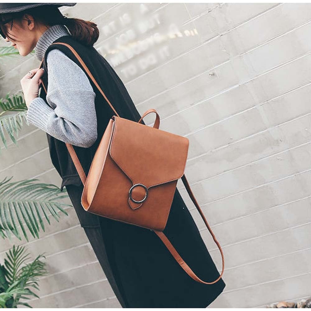 スタイリッシュなリング金具がおしゃれなスクエア型かぶせリュックサック