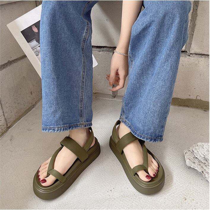 2024新作 レディース サンダル スタイルアップ オープントゥ 厚底 美脚 脚長 フラット ブラック 黒