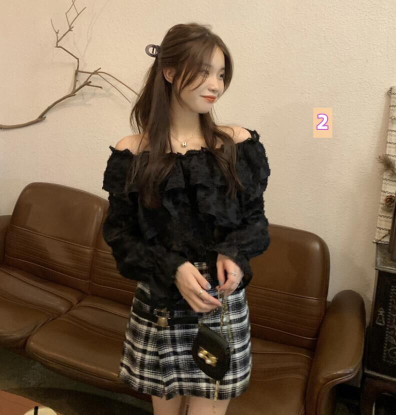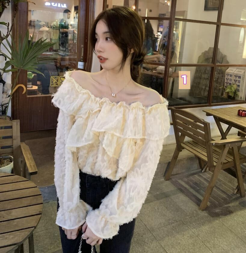 トップス 女 レディース 長袖 無地 ボートネック シャツ ブラウス インナー 2色