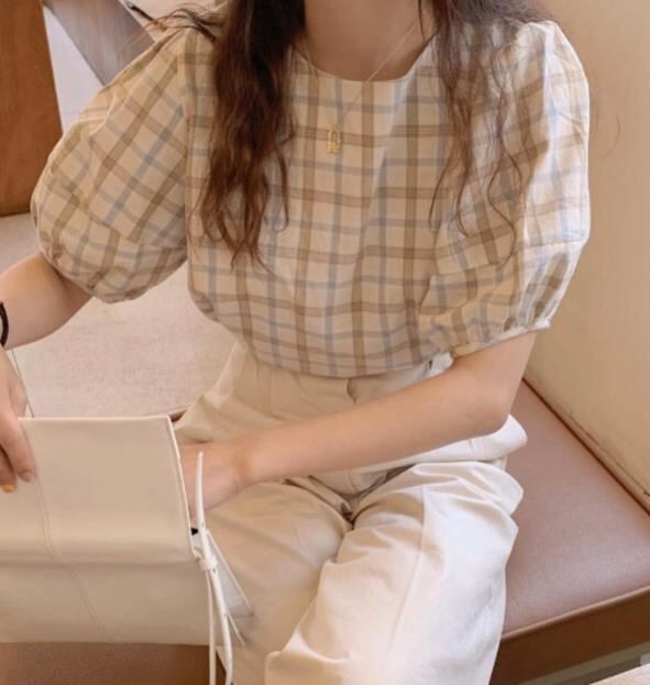 トップス 女 レディース 半袖 チェック柄 シャツ ブラウス インナー S-XL