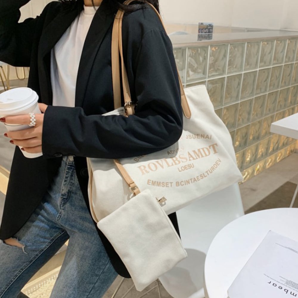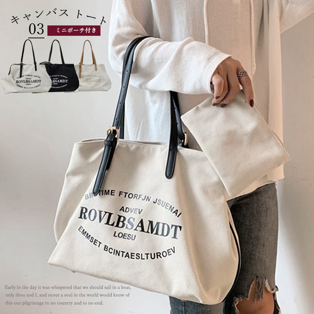 キャンバスバッグ レディース ポーチ付き トートバック 大きめ 肩掛け
