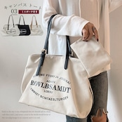 くたっとした素材感がこなれ感を演出してくれる大容量のキャンバスバッグ、華奢な持ち手もバランスよくおしゃれなポイント