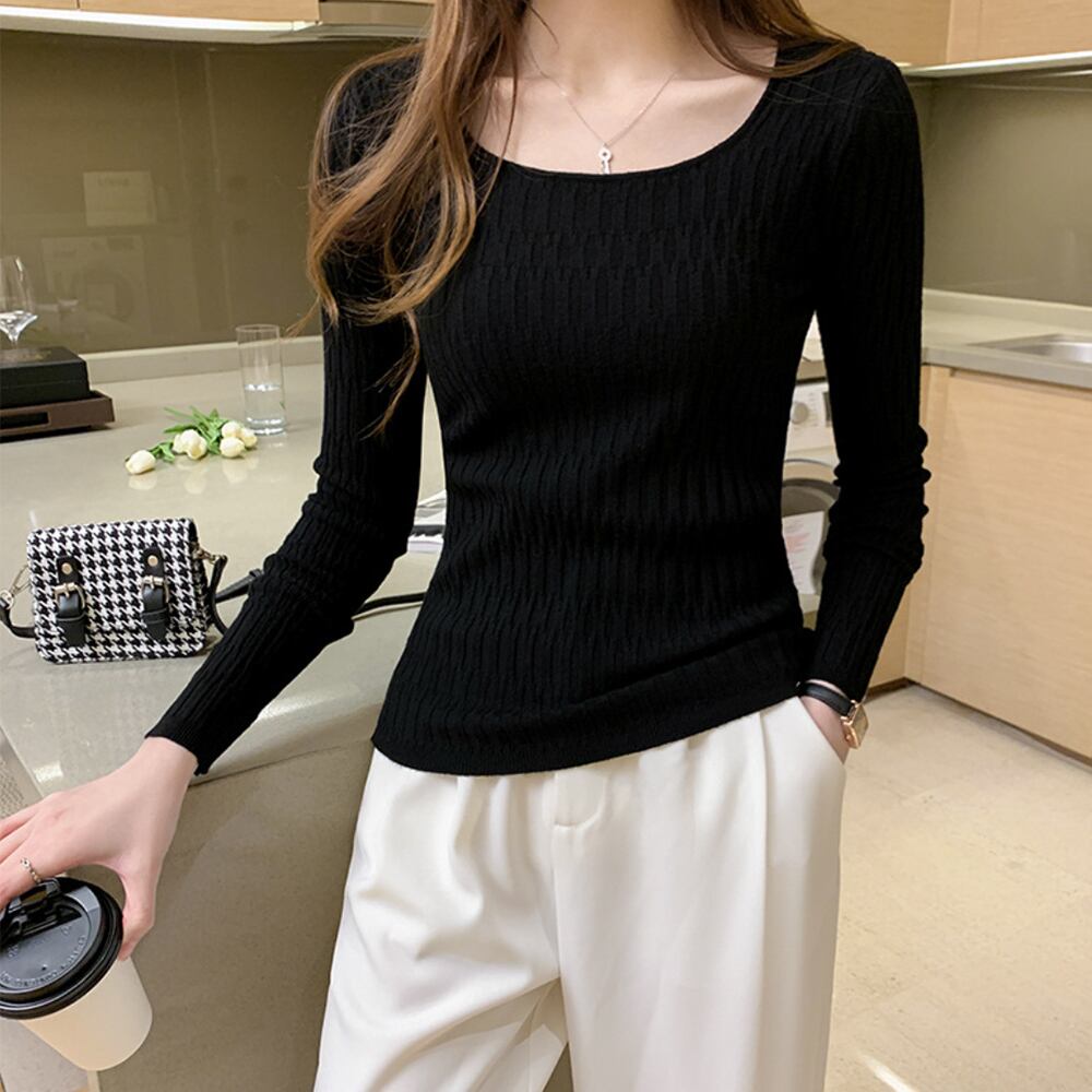大人のきれいめコーデに良く馴染んでくれるスクエアネックニットトップス
