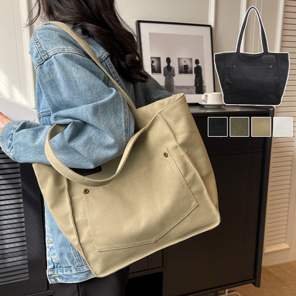 大きめママバッグ 無地 手提げバッグ 帆布レジャー旅行鞄