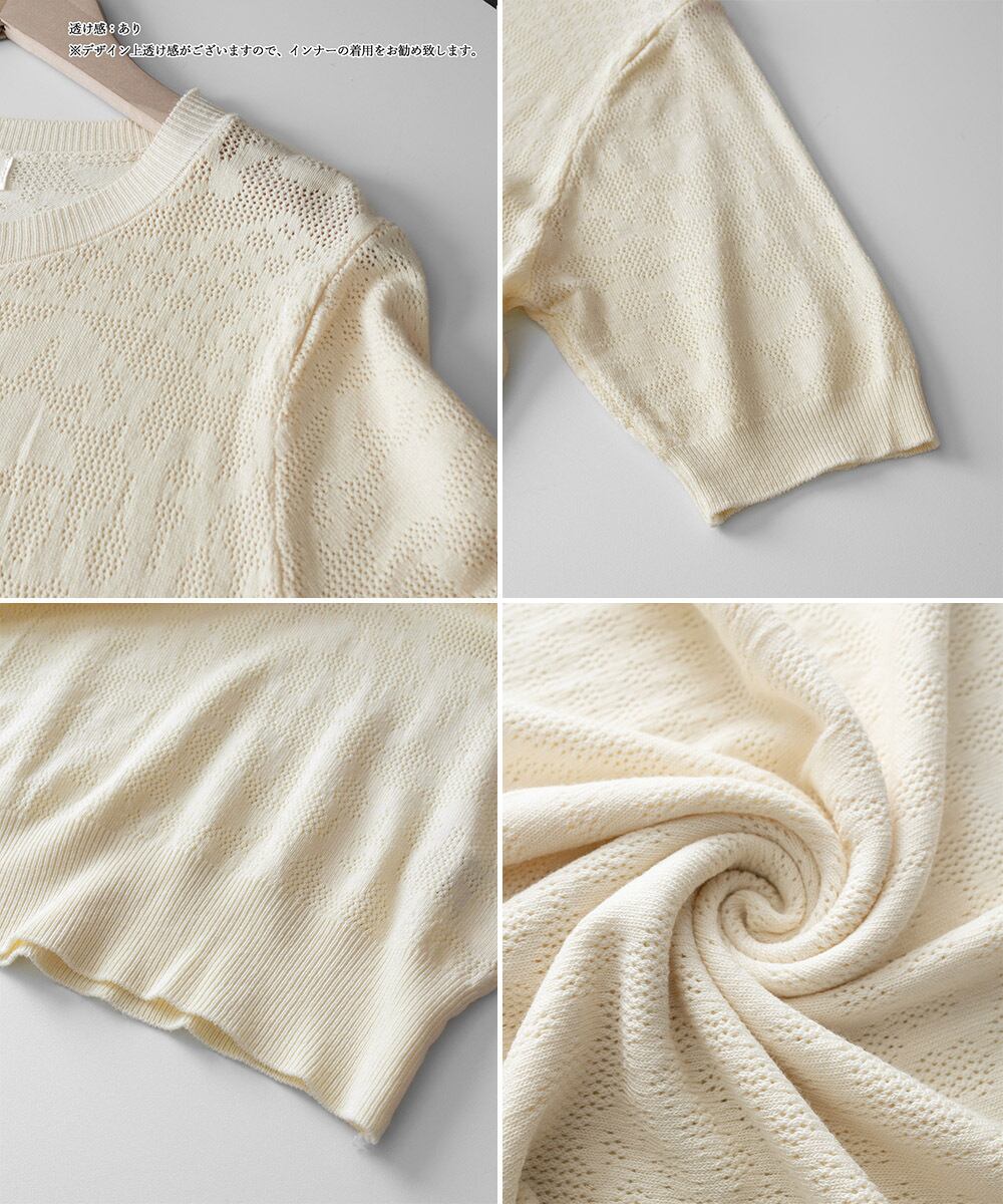 柔らかな風合いの透かし編みが、レディライクな華奢感をだしてくれるジャガードニットトップス