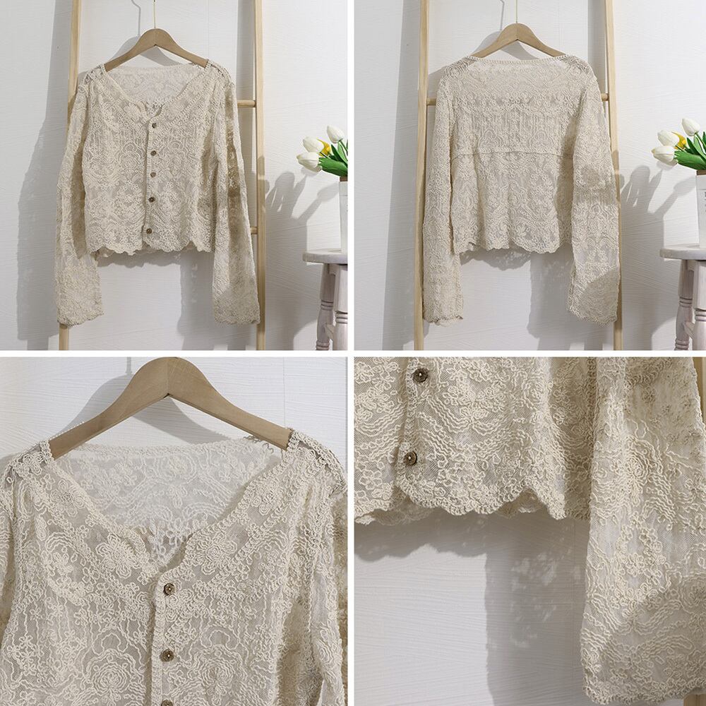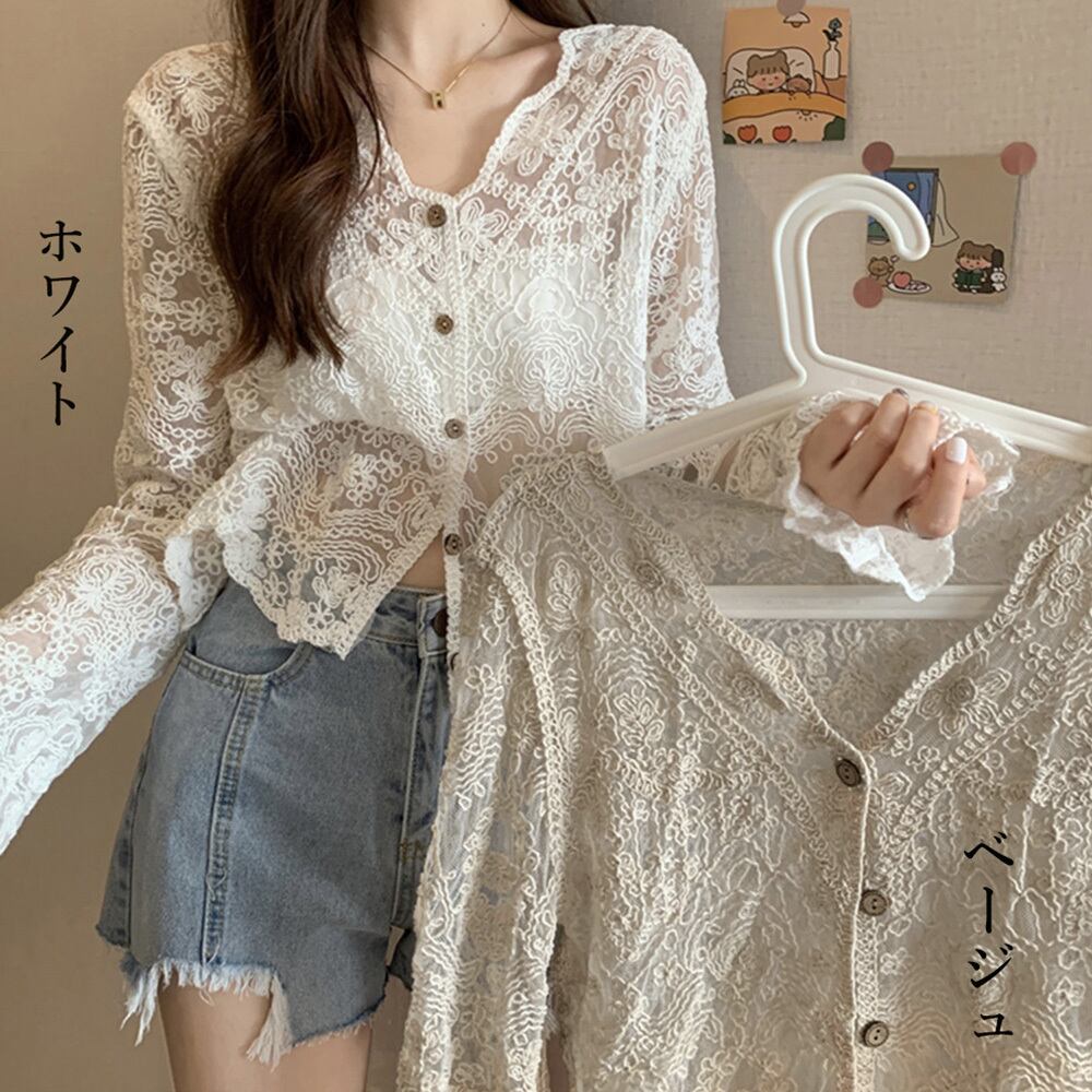 サマーカーディガン ショート丈 長袖 ナチュラル 可愛い 刺しゅう フェミニン 羽織り 薄手 透け感 前開き 紫外線対策