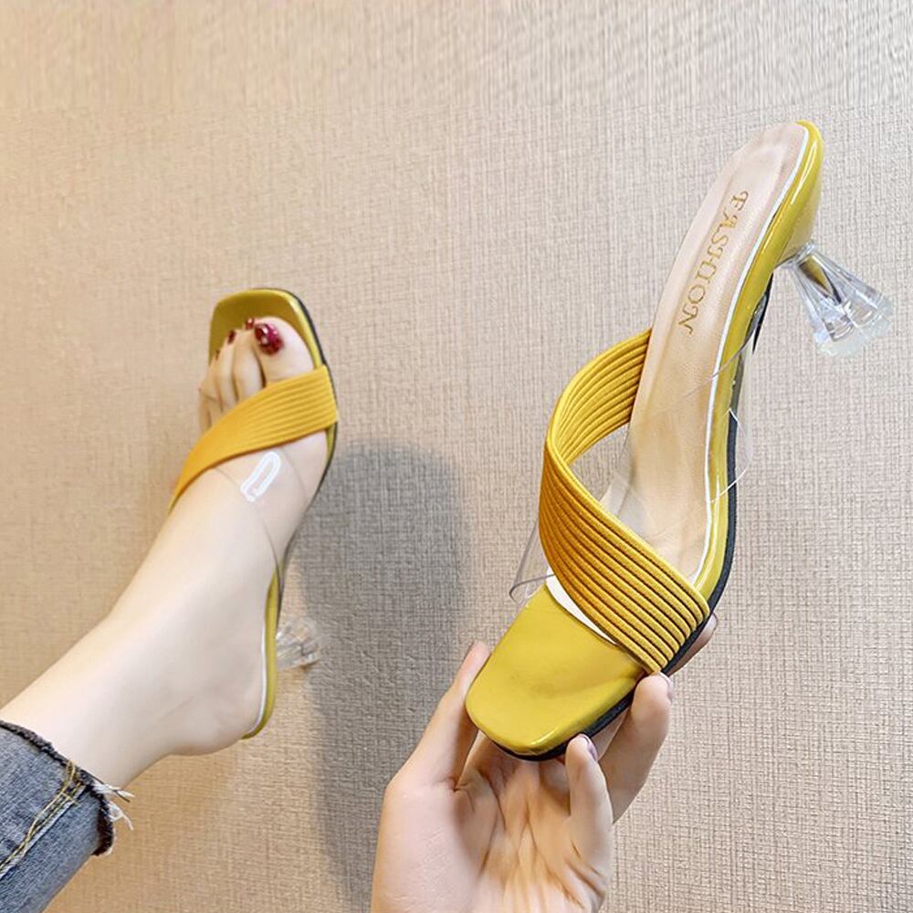 リブベルトとクリア素材を使用し、涼しげな足元に導く異素材mixストラップミュール
