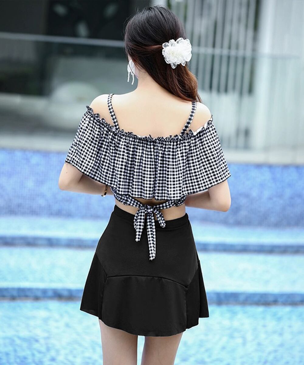 ギンガムチェック セパレート水着 レディース 露出控えめ ハイウエスト パンツ付きミニスカート 2点セット水着大人可愛い