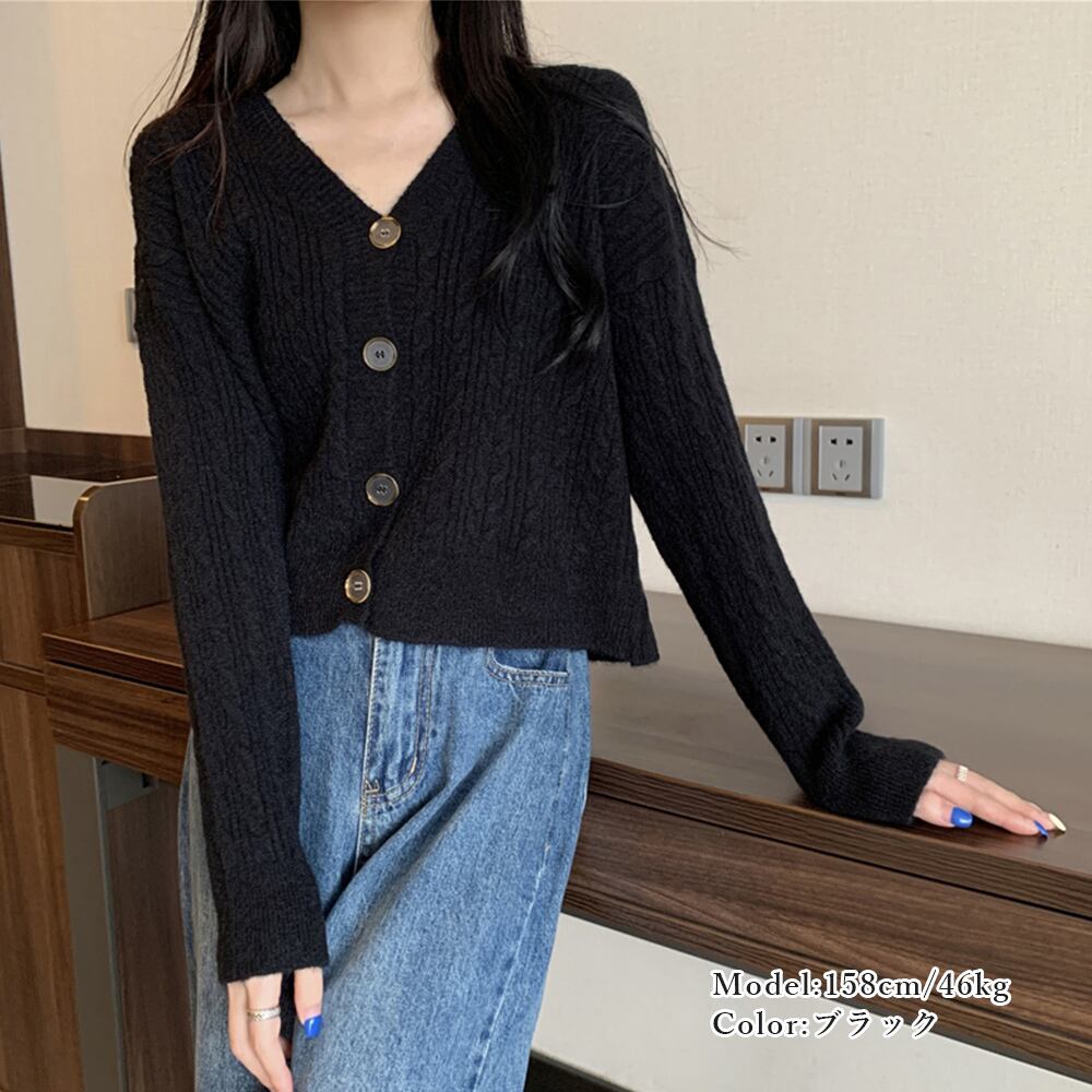 ケーブル編みが旬のシルエットに見せてくれるショート丈のニットカーディガン
