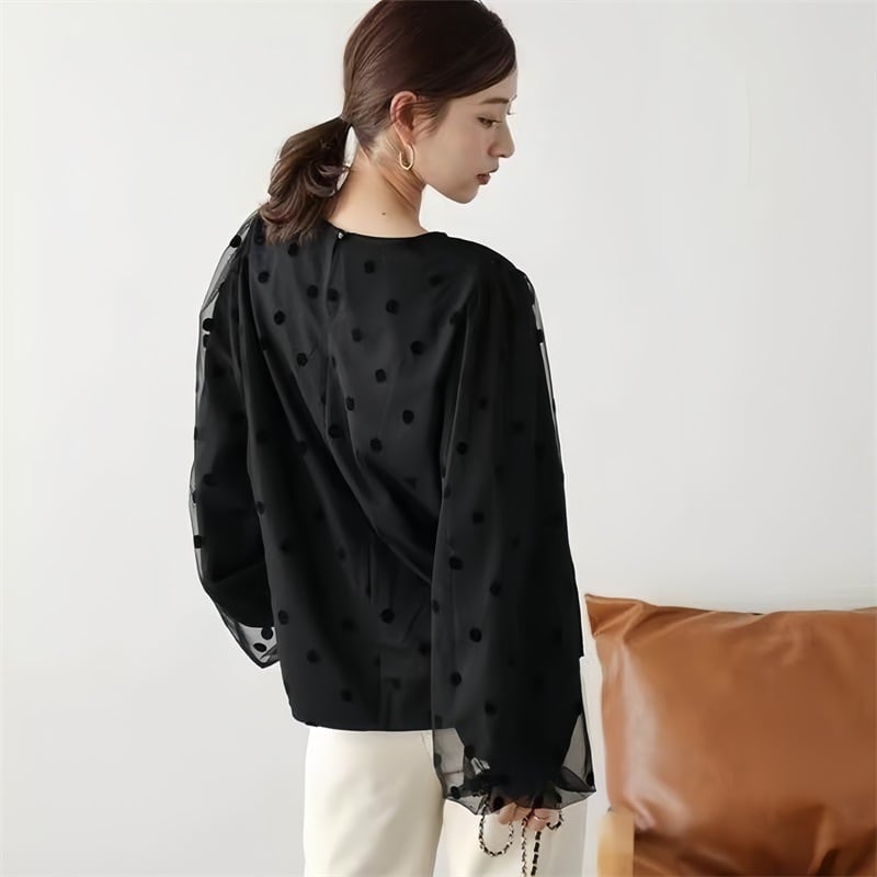 2024年新作 トップス ドット柄 長袖トップス レディース ハブスリープ 気質 人気アイテム