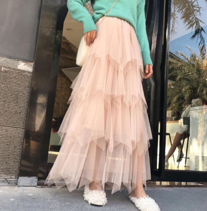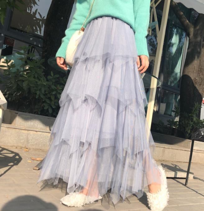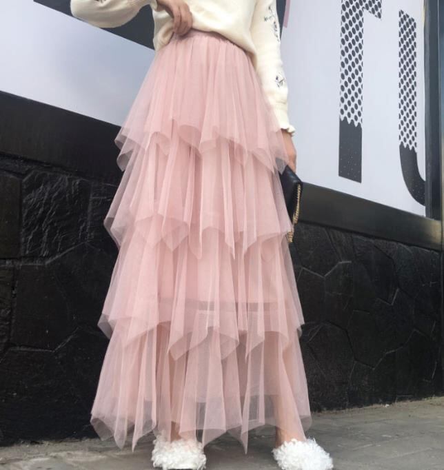 ボトムス 女 レディース ハイウエスト チュール ロングスカート 台型スカート