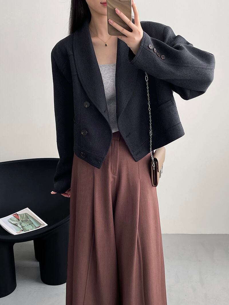 トップス レディース テーラードジャケット 無地 2024新作 2色 韓国風 ショット丈 通勤