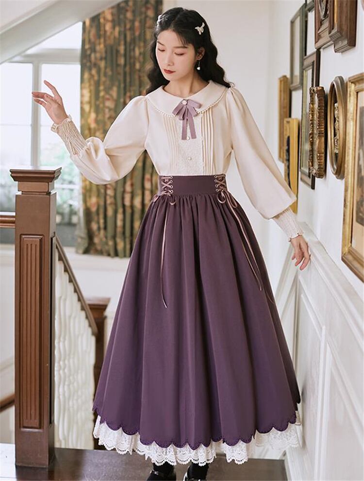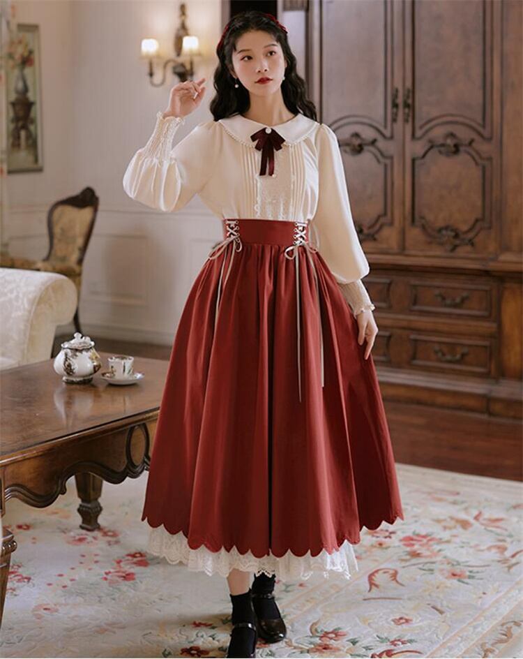 ドキドキ綺麗ですね 韓国ファッション ロリータ風 2点セット スカート ロング フェミニン ガーリー