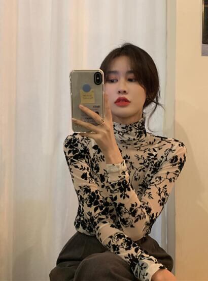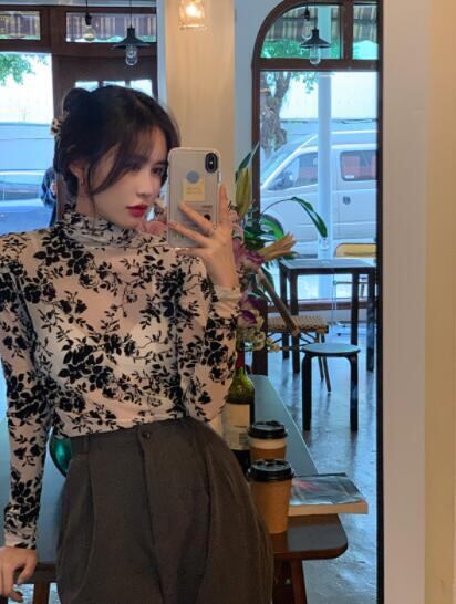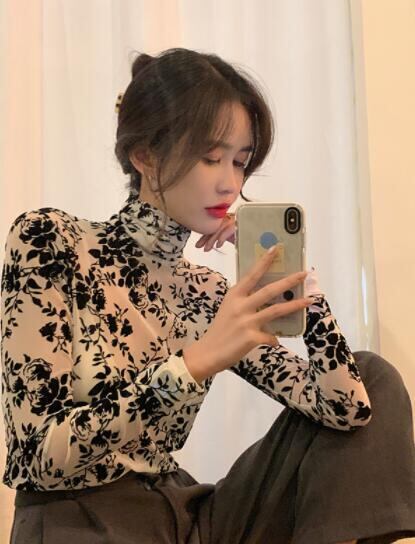 フェミニン 可愛い トップス 薄い ブラウス 長袖 ハイネック