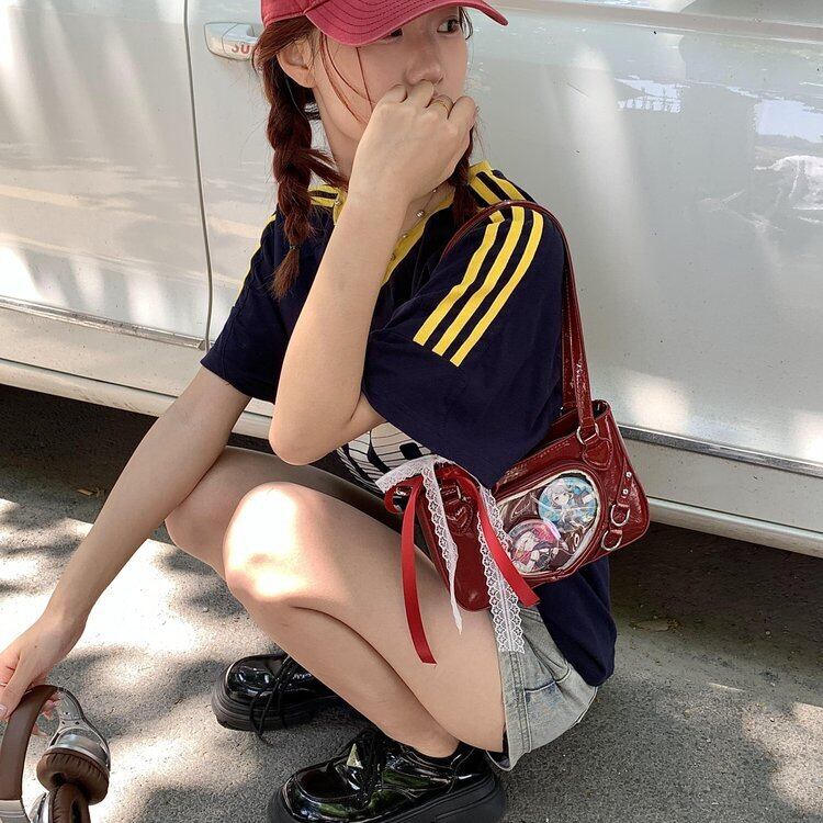 可愛い痛バッグ 学生風 PVC 痛ショルダーバッグ 見せバッグ コンパクト 肩掛け 斜め 痛バ レース