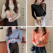 細めのリブが縦長ラインを強調し、スリムに見せてくれるニットセータです