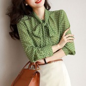 2024年新作 ブラウス シャツ 長袖ブラウス トップス レディース ドット柄 オシャレ 気質